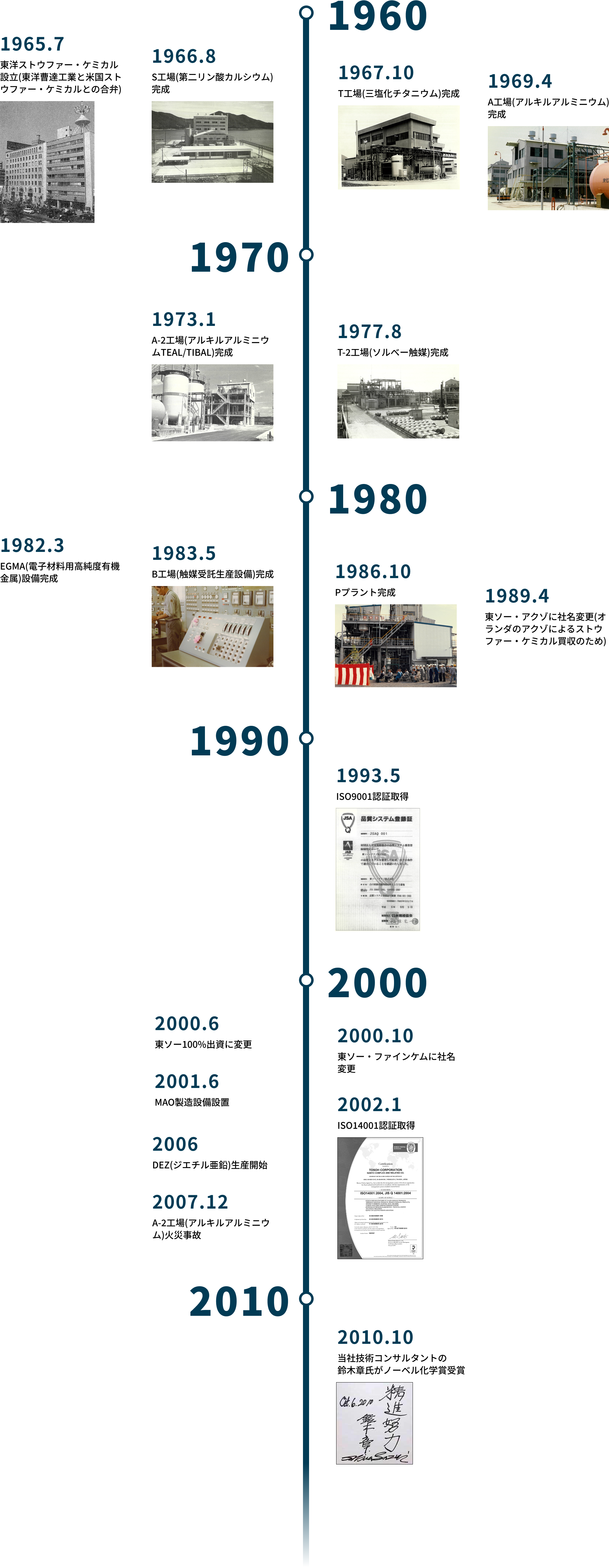 東ソー・ファインケムは1965年、東洋曹達工業(現・東ソー)と米国のストウファー・ケミカルとの折半出資によって東洋ストウファー・ ケミカルとして発足しました。創業の目的はDCP(第二リン酸カルシウム)の国産化でした。